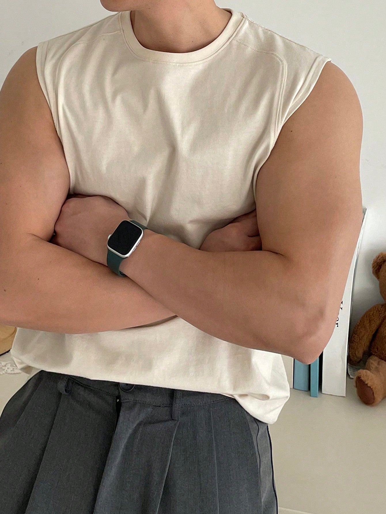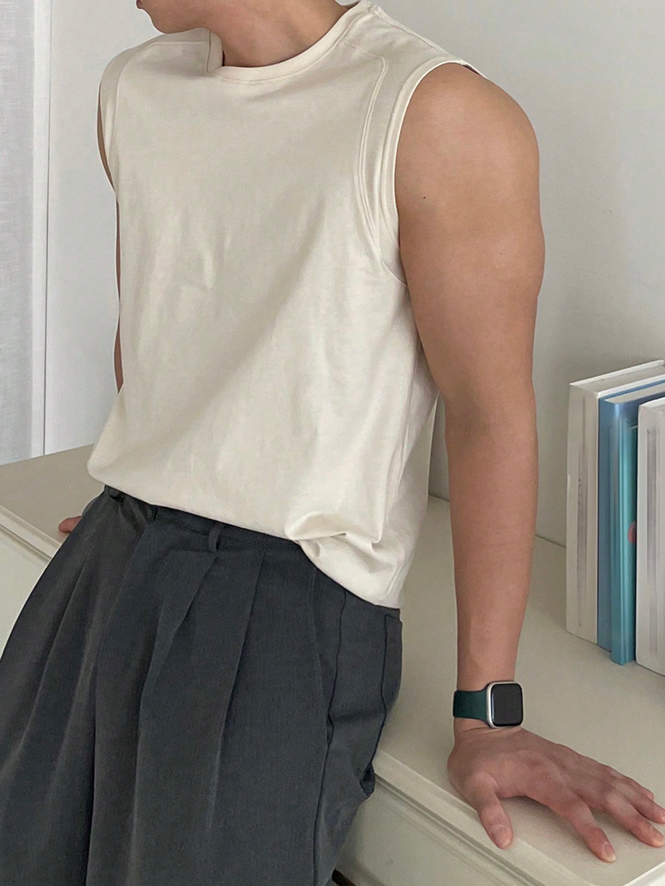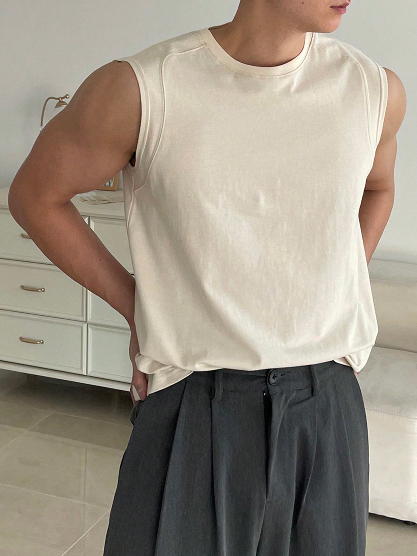 Men's White round neck relaxed tank top |summer essential|