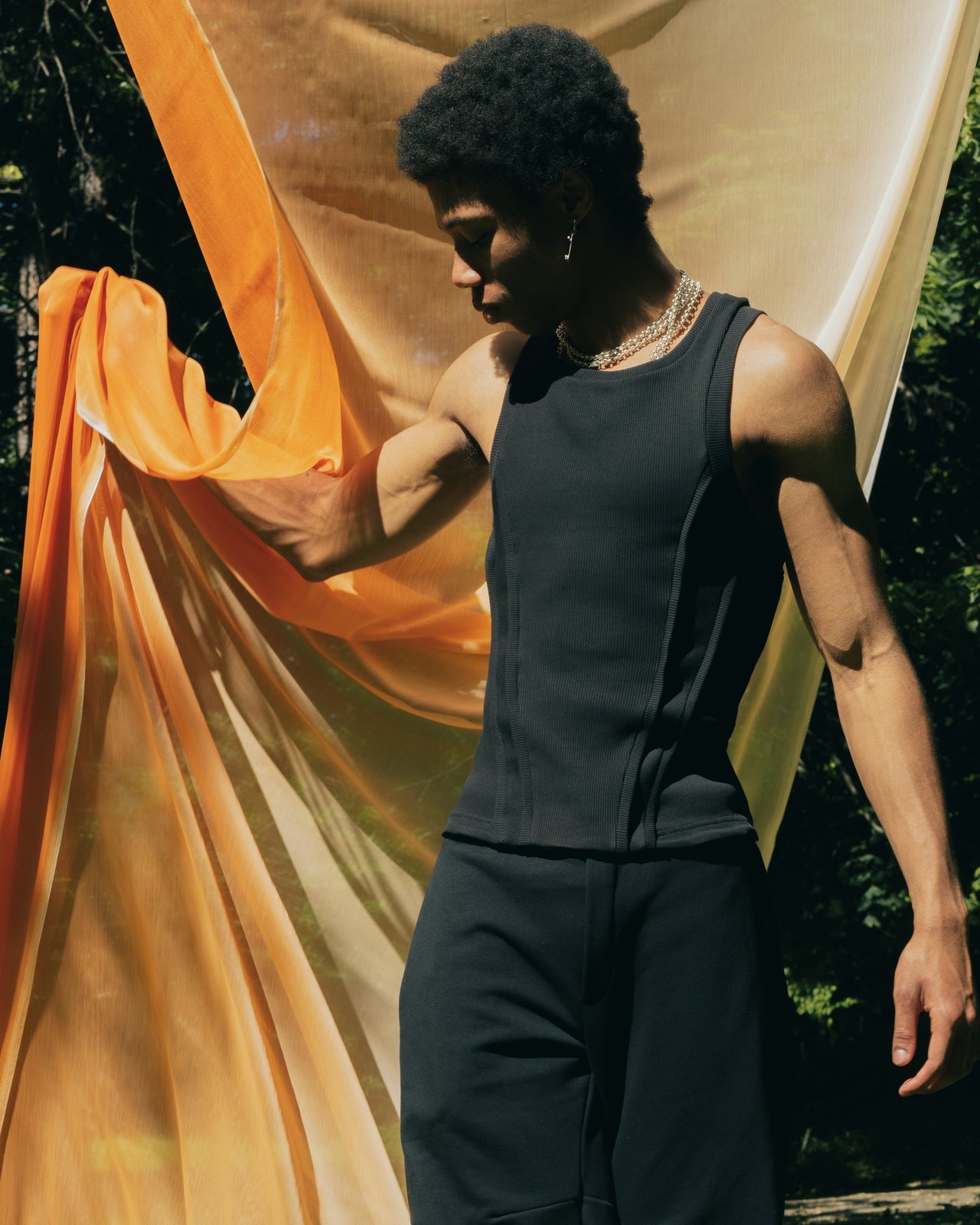 Trendy Men Halter neck vest with double hem (Black)